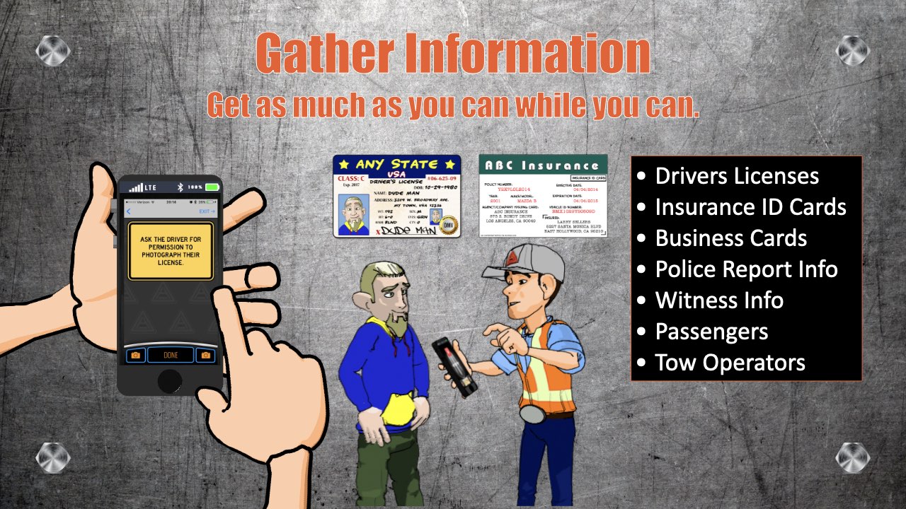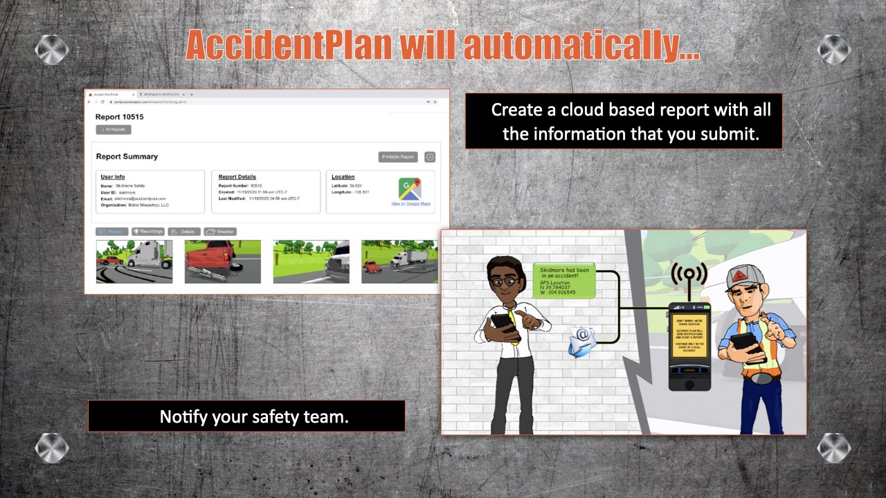 Following industry best practices, AccidentPlan guides drivers step-by-step on what to do and how to gather critical, perishable information about the situation once they have been in an accident.