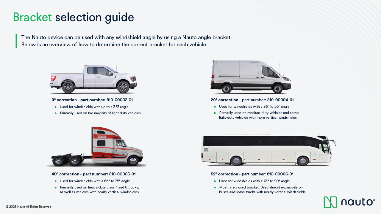 **NOTE: This bundle is recommended for windshields with a 76° to 90° rake angle such as those found in buses and some trucks with nearly vertical windshields.**